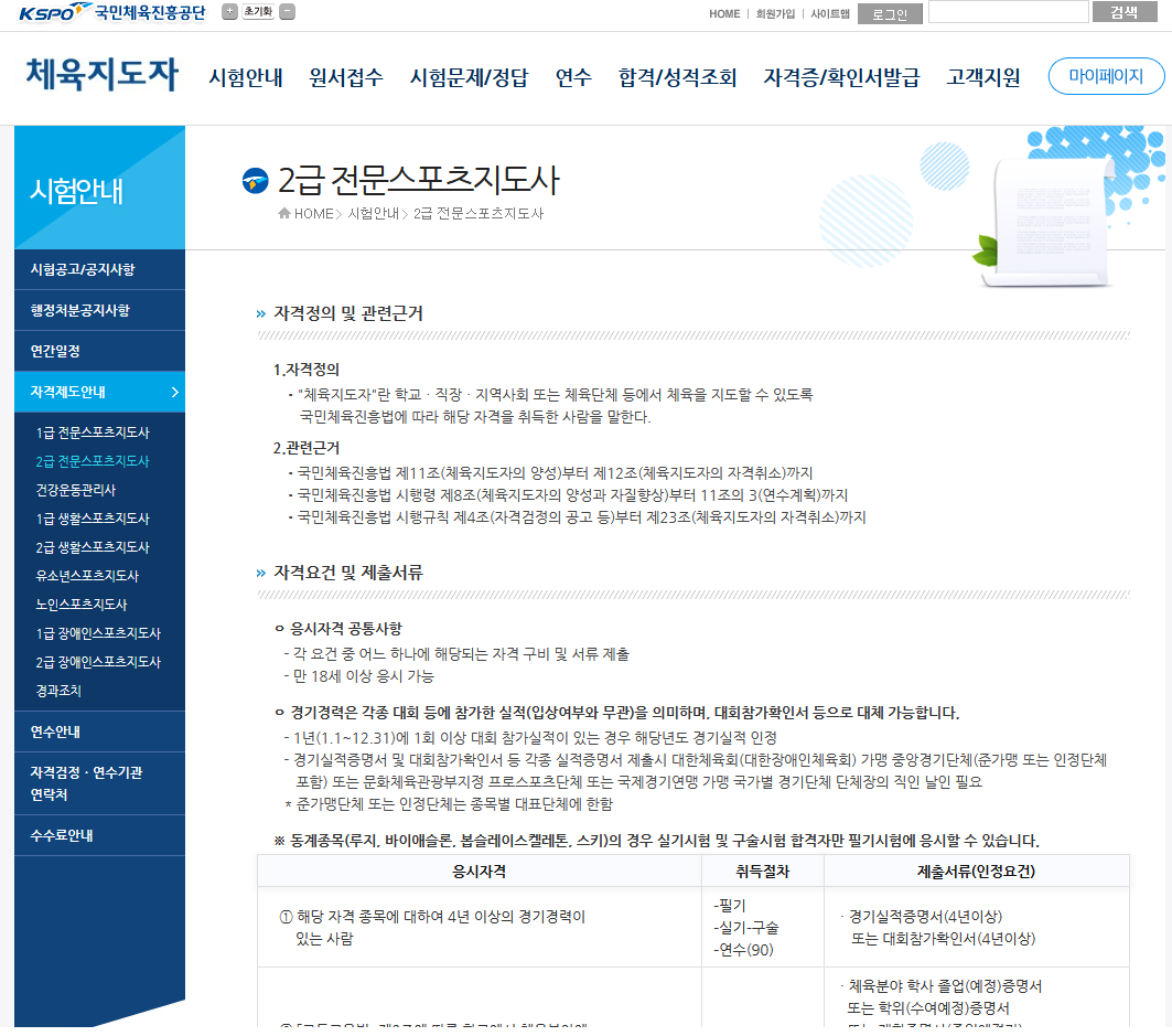 2급전문스포츠지도사 < 자격제도안내 < 시험안내 | KSPO 체육지도자 자격검정ㆍ연수원