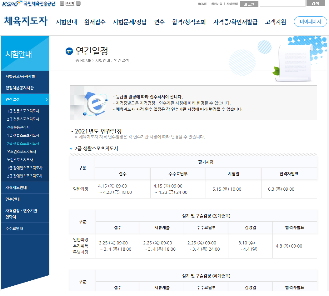 오늘은 2021년 생활스포츠지도사 2급의 일정에 대해서 포스팅합니다.